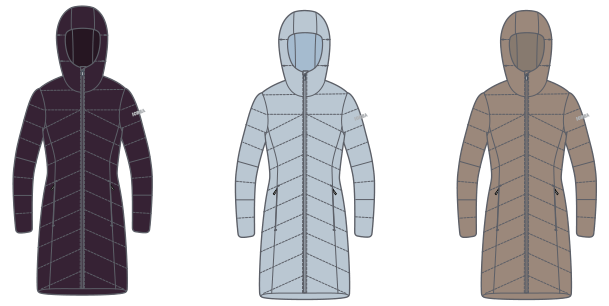 | WOMENS´CASUAL OUTDOOR DOWN COAT * 2L waterproof & breathable fabric, C0 DWR. * 70/30 duck down filling at main body and sleeves, FP550. * Poly padding at hood, shoulders, waist sides and hem. * Bonded channels for down filling. * All seam sealed. * Elastic cord adjustment at hood. * 2 hand pockets with zips. | ![]() | |