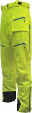 | * 2-layer waterproof & breathable 4-way stretch fabric. * Contrasting fabric on bottom for abrasion resistence * Shaped design * Adjustable waist * Detachable bib with suspenders * Main zip with snap closure * 1 hand pocket with welded waterproof zip * 2 thigh pockets with welded waterproof zips * Leg ventilations * 2 zips at bottom with closure * Inner storm gaiter * Seam sealed | ![]() | ![]() | ![]() |
