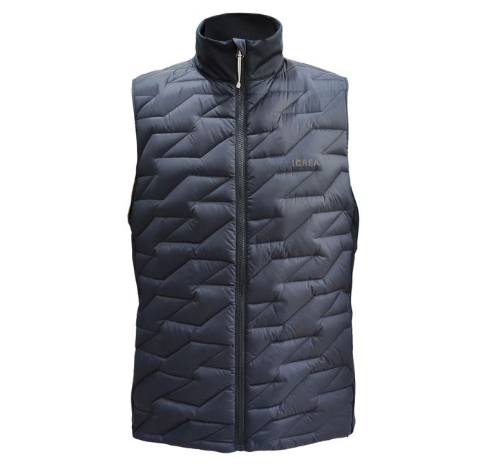 24MDV02 MEN'S LIGHT WEIGHT HYBRID VEST * Super light and soft downproof fabric * Knitted stretch fabric at side panels and collar * Duck down filling, 90% down/10% feather * Hand pockets with hidden zips * Adjustment at the bottom * 1 inner packable pocket * Front chest with branding | ![]() | ![]() | ![]() |
